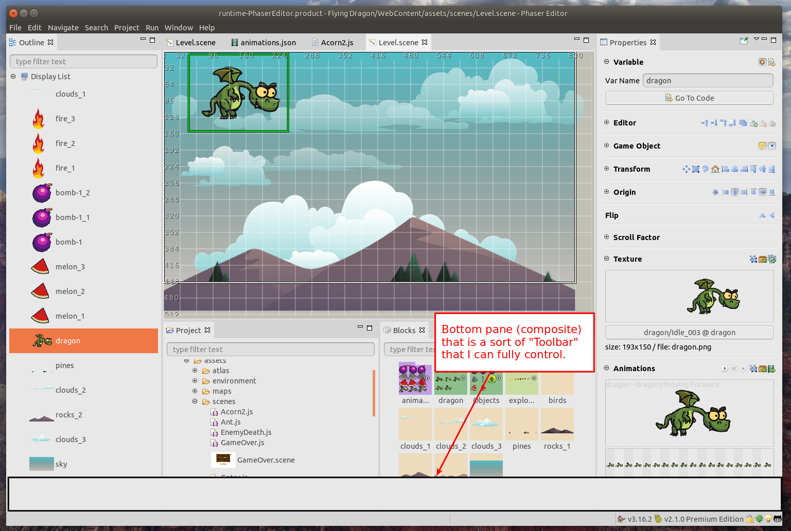 How can I add a bottom panel (Composite) to the Eclipse IDE workbench? I need to implement something similar to the perspective switcher but with bigger icons and custom layout, and custom widgets. I was trying to use the IDE status toolbar bit it really does not look well for my purpose. I need big buttons and custom layout.
