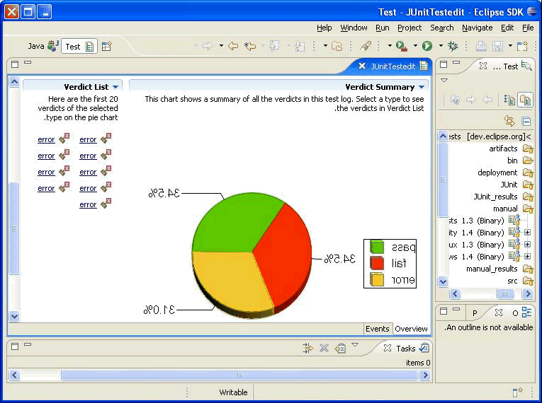 When we conduct our globalization testing for BIDI support, we usually set the system locale to a BIDI language speaking country (e.g. Hebrew in Israel) in "Regional and Language Options" if not on a native platform. Starting eclipse this way doesn't  seem to make the workbench right-to-left.  However, in TPTP, we have a Test Log Viewer editor that contains a graphical pie chart. The pie chart is displayed correctly in this case (note the legend used to be on the right hand side of the pie in a English locale, as well as inside the legend, icons used to be at the left side of the text pass, fail...):