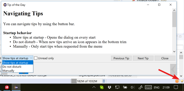 2. Do not open dialog. Show icon in bottom trim if there are new tips