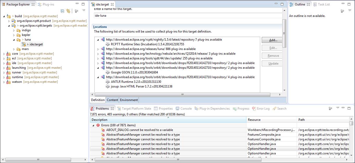 I am trying to launch RCPTT from Eclipse and I followed the steps in Contribution Guide exactly, but it shows there are a lots of dependencies can’t be resolve. Could anyone help me on this? Do I miss some key repositories or anything others? Thanks