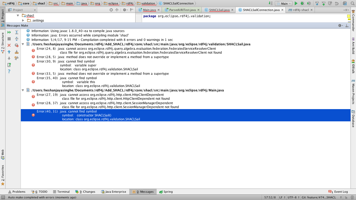 I think you can help me to fixed that intelliJ IDEA issue on next hangout call.i'll try to do this work using Eclipse IDE.I setup project in Eclipse and it don't give these errors.I think i can continue my work with eclipse IDE.