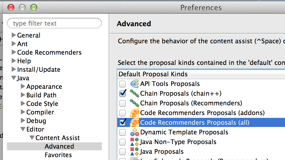 It needs to be activated separately under Java > Editor > Content Assist > Advance. It would be nice if some of you could give it a spin and report back any issues you have with the proposal rankings or completion in general.