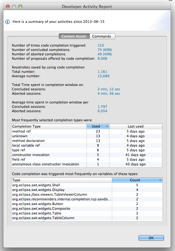 The first task was to remove the StyledText widget from the "Content Assist" tab, because we had some layout problems with the StyledText and large numbers. The result you can see here: