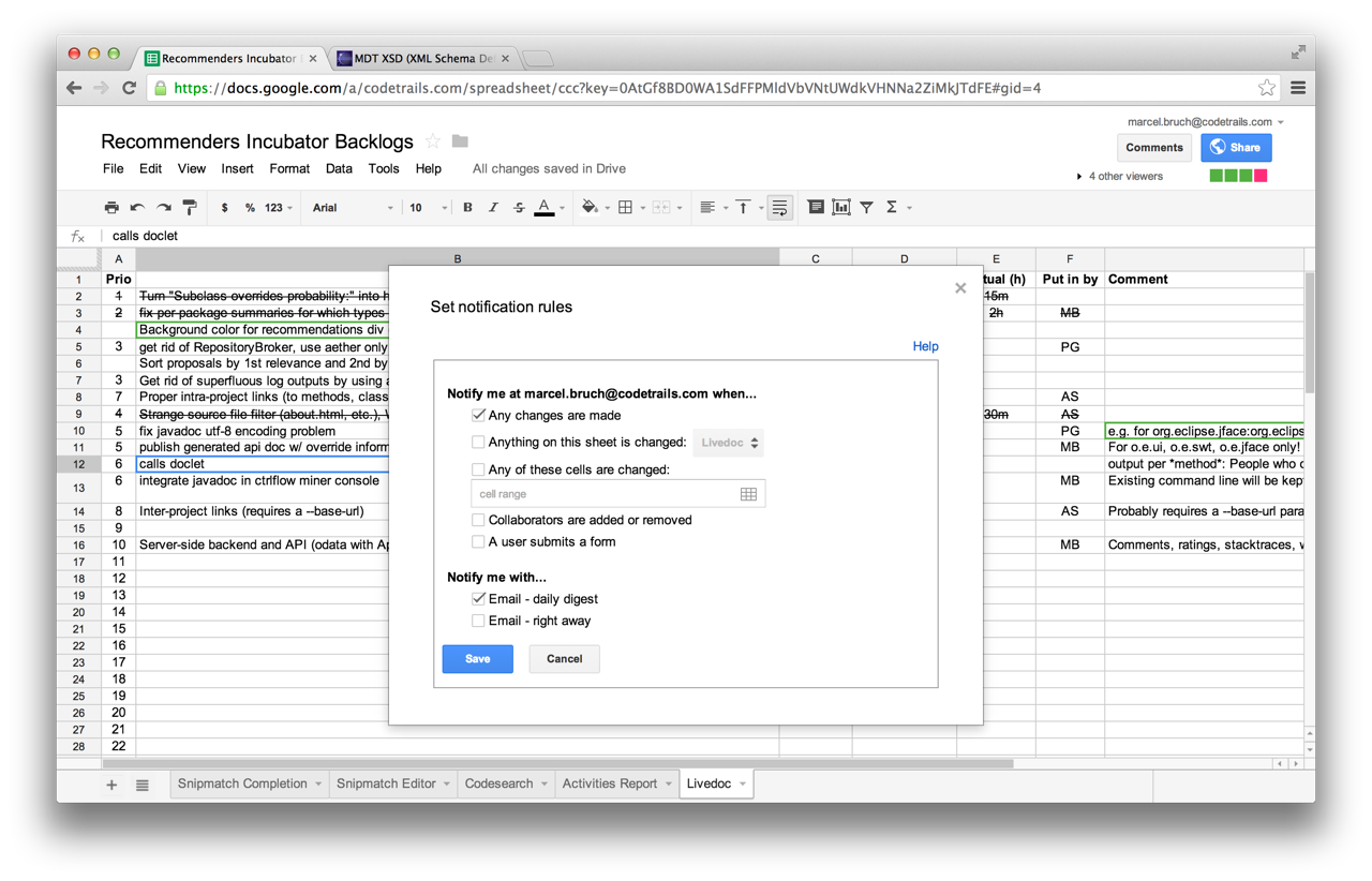 since we have a couple of people editing the incubator backlog file already: You may want to get updates about changes in backlog send by email once a day.