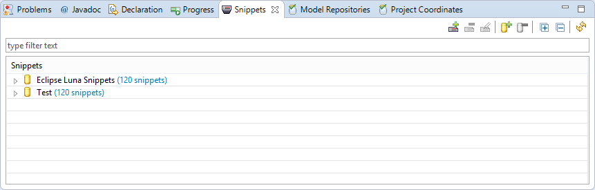 Bug 440730 - Move buttons on Snippets View to toolbar and context menu