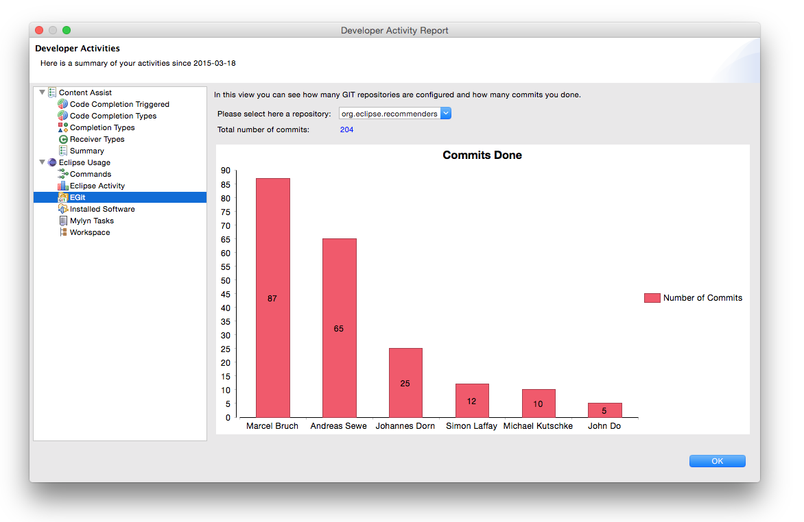 Project description: Developer Statistics is an incubator project of Eclipse Code Recommenders that