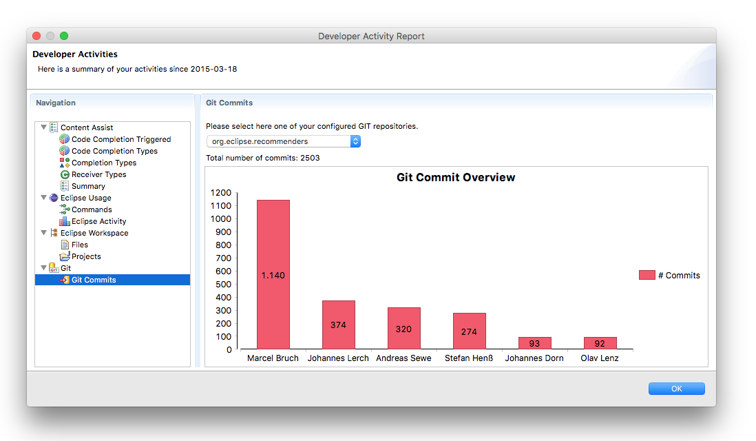 Project description: Developer Statistics is an incubator project of Eclipse Code Recommenders that tracks how developers use their Eclipse IDE.
