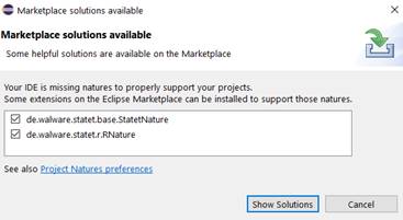 I recently started getting the message below. This is not related to installing the latest version as I haven’t yet. I tried the “Show Solutions” option but that didn’t end up leading me to an obvious solution. I have been using this StatET for years, but I don’t know what these “Natures” are, where to find them, or how to install them.