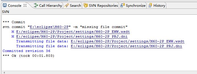 when successful ,console message as following:this time svn command contain deleted command.