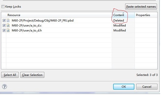 I deleted file in eclipse IDE,and when I commit,the commit dialog show "Content" as "Deleted".