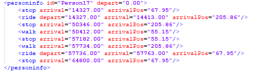 I've been looking at the tripinfo-output results data when using the multi-stage person specification  and there is an inconsistency in the reporting of "walk" and "ride".
