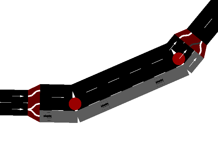 It may cause a decceleration on vehicles passing from the  lane 0 (first edge) to the lane 1 (second edge). I'd like it to become similar as this: