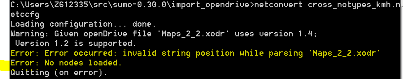 I tried against to use netconvert to convert an opendrive file. But I’m facing a new issue. I think there is in the netconvert still an issue by the converting to Opendrive. As you can see in the picture bellow there is error message that I never saw with the version before.