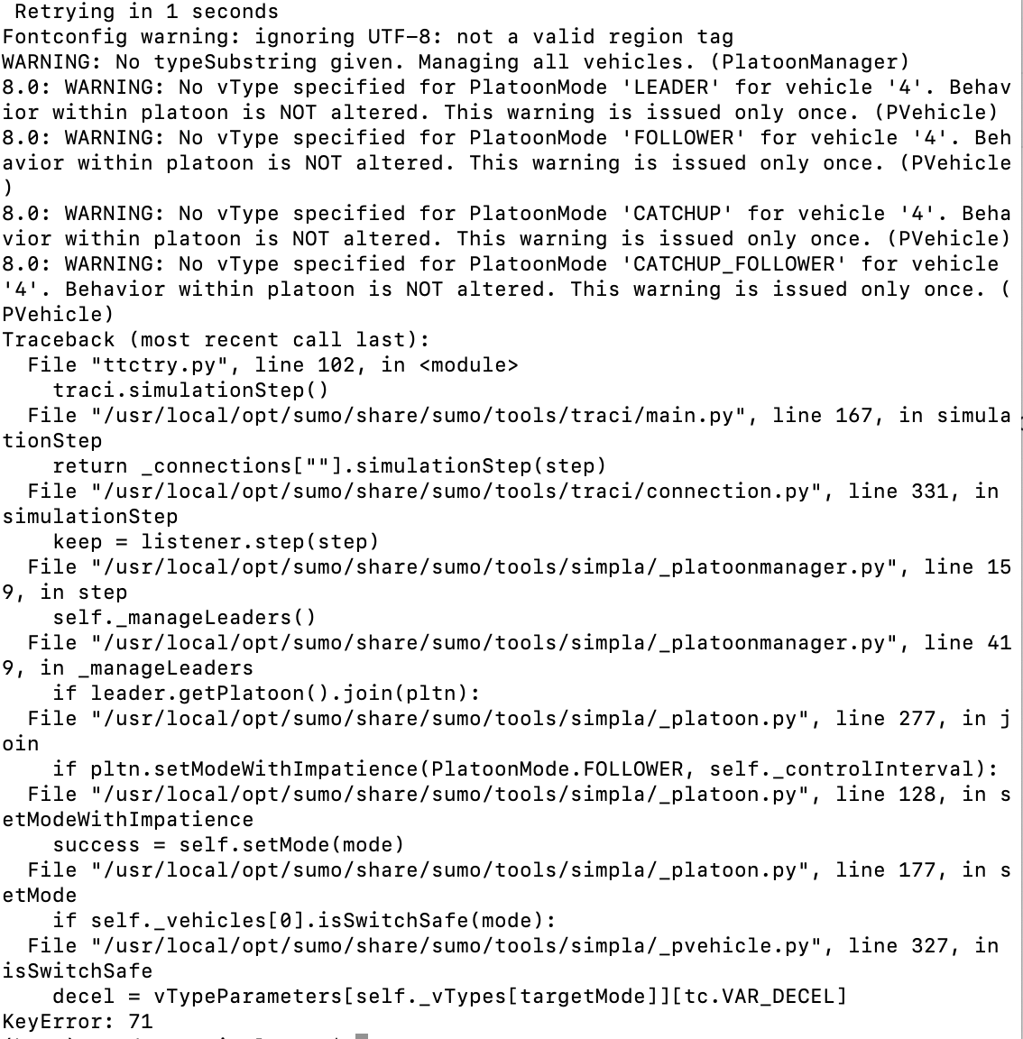I tried Simpla, and it ran well. But after I added the human-driven vehicles (red circle in the following picture), it went wrong.