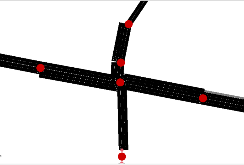 I just started using SUMO. I have run into an issue where I am trying to build the following intersection (i.e. see below), but for some reason I keep getting these grey areas at some of the junctions such as at the intersection or where the road geometry changes from a two-lane road to a three-lane road. I believe these grey areas are preventing the execution of routes in my network as well.