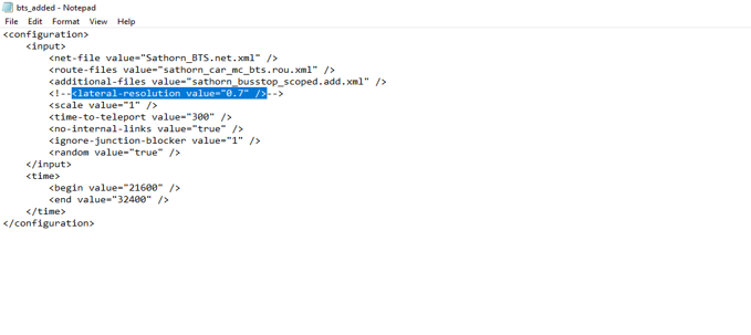 I am trying to clone a project that was done with SUMO 1.4.0 (I am using SUMO 1.19.0) but the simulation doesn’t open because of this line <lateral-resolution value="0.7" /> in the configuration file unless it is commented out. The motorcycles in the simulation don’t move in between cars to the front of the stop line when the traffic signal light is red, how can this be rectified?