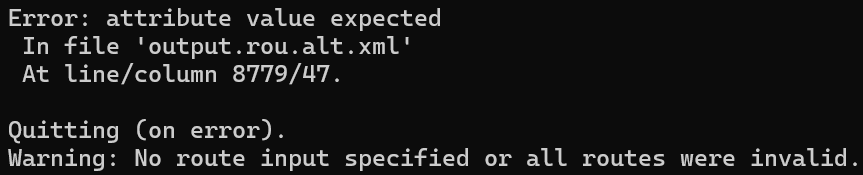 After running various iterations of duaRouter and SUMO for some reason duaRouter crashes and outputs empty files. This happens after many iterations or if I set the number of maximum alternative routes very high.