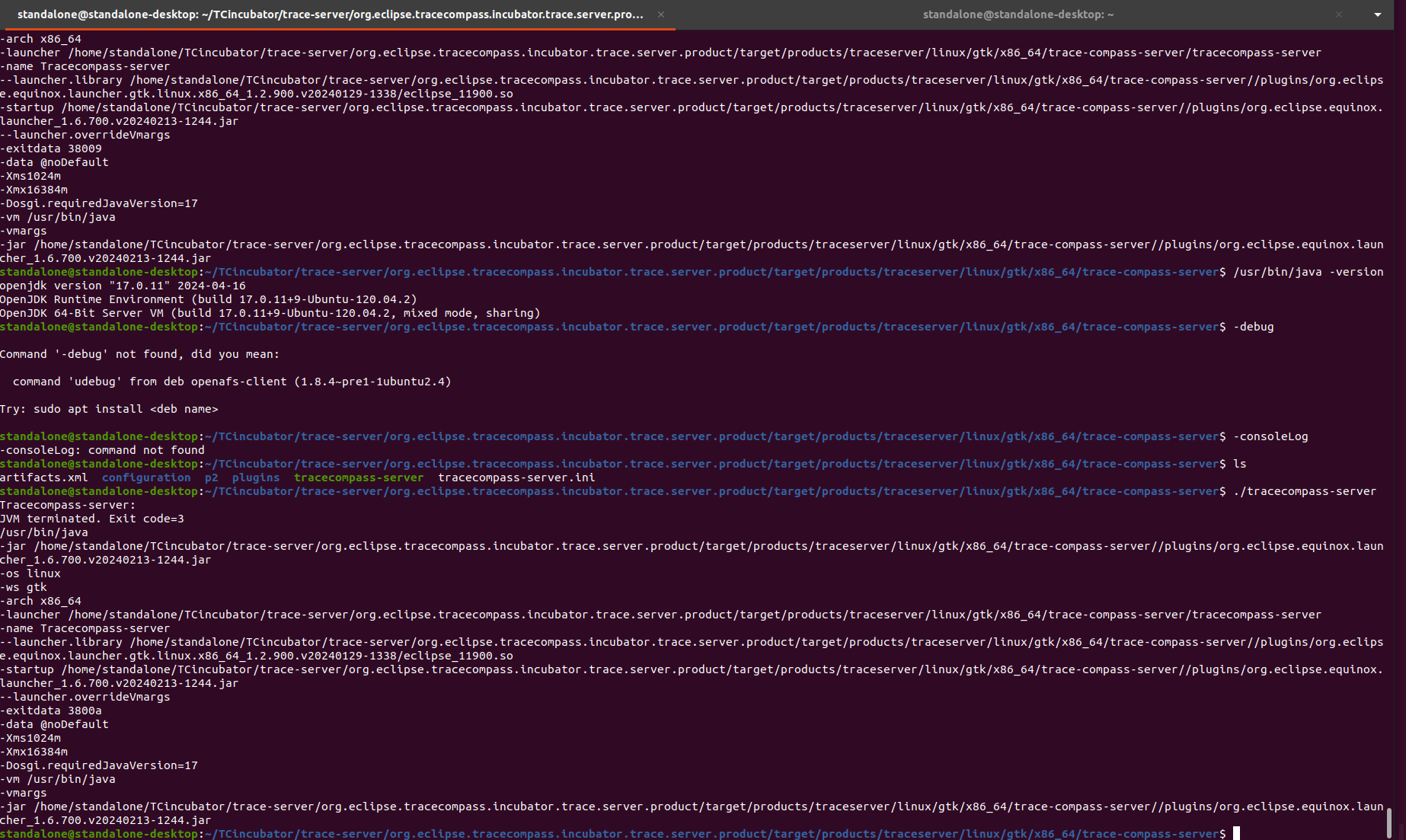 I am currently compiling the incubator version of the trace-compass on my Linux system. The Ubuntu version is 20. The building process throws out the exit code = 3 error with DMV terminated so that it might be caused by the Java memory storage. I have manually edited the Xms and the Xmx limit, but the same type of error is popping up. I am not sure what else I could do to get the compilation built successfully.