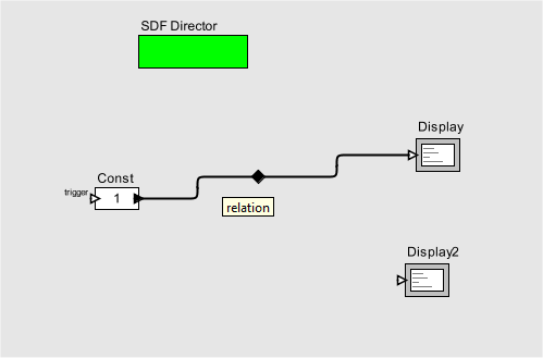 In the current Triquetrum status, the result is still the single, but graphically disconnected, relation that now somehow links Const to both Display actors.