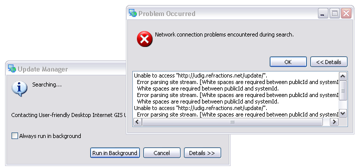 But I always get a network connection problem with “Unable to access http://udig.refractions.net/update/”. Does anybody know why that happens?