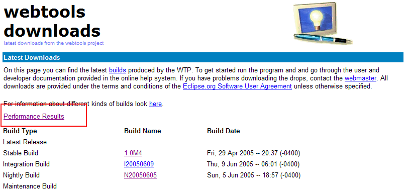http://apps.eclipse.org/webtools_performance/web/getScenarios.jsp