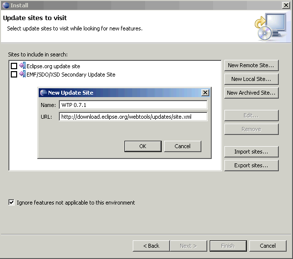 5. Enter any name and http://download.eclipse.org/webtools/updates/site.xml