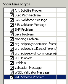 I've noticed our WTP 'marker' names are a bit wonky.   The platform names it's markers using a "XYZ Problem" convention.  Many of our WTP validators define markers using an "XYZ Message" convention.  Worse still there's some rather ugly org.eclipse.jst.xxx and org.eclipse.wst.xxx names showing up in the list too.