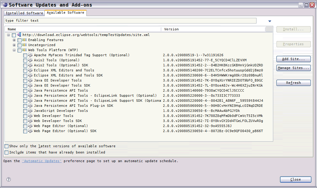 Note: some of the "optional" features don't act as optional as they should ... but that'd be a larger change and not sure it is worth fixing at this point. For example, if you pick Java EE developer tools, you will automatically get the Web Page Editor. But, JPA, I think, was defined correctly such that if you install Java Persistence API Tools, then you will not automatically get the EclipseLink Support, without selecting it.