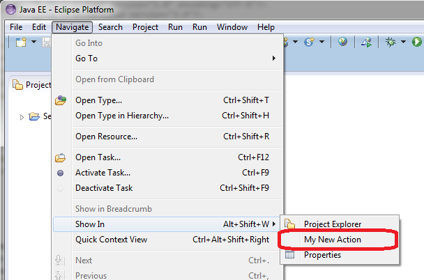 I am trying to add additional action to “Show In” menu inside Servers view, but by using approach described in http://wiki.eclipse.org/Menu_Contributions#popup: I only can get my action inside main menu, but not in the popup menu inside server view.