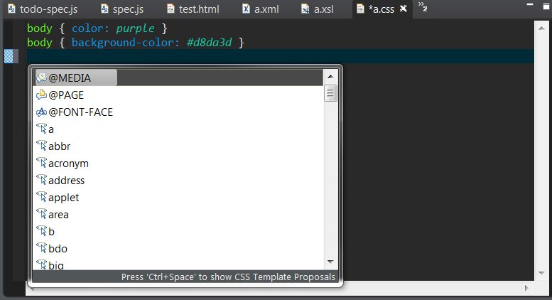 1) popup completion should use dark theme. Indeed completion popup is blank for CSS, HTML and JS editor: